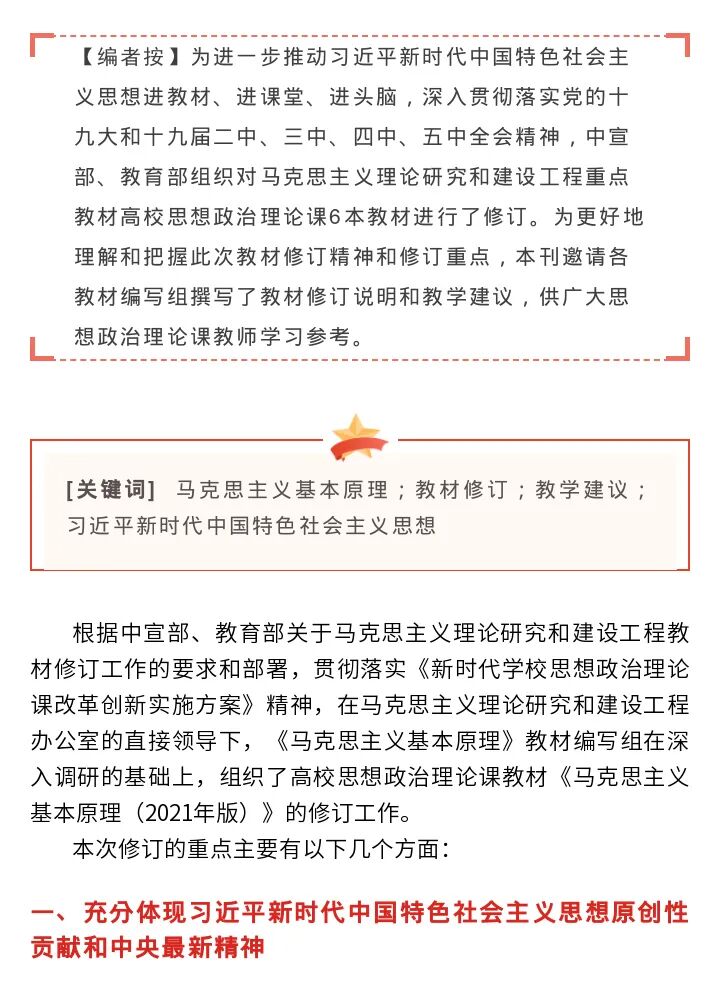 《马克思主义基本原理(2021年版)》修订说明和教学建议