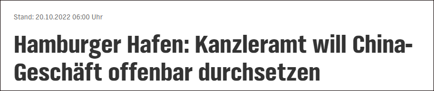德广联的消息说,联邦经济部正在对这一收购案进行审查,并计划将该议题提上联邦内阁会议议程,以便做出最终否决。但联邦总理府则站在德国企业界一边,总理朔尔茨已要求上述的六个部委寻求妥协方案,有意推动收购案在10月底完成,以便让中远海运入股。相关法律规定,如果政府未能在截止日期结束前通过禁止交易或延长期限的决议,该交易在法律上被视为自动完成。