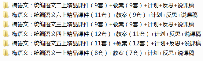 同样,这个新学期,梅语文和梅学堂团队的老师熬夜加班,历时一个月时间花了大功夫为大家定制了一份开学大礼:2021秋季1-6年级上册全科课件教案等教学资源包。涵盖最新统(部)编版语文、七大版本数学、统(部)编版道德与法治、多版本英语、科学、美术、音乐、体育等8大科目。