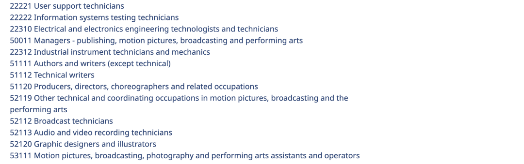 以下是最新版的BC Tech职业列表,包括了各类计算机工程师、软件工程师、网站开发人员以及数据分析师等等,欢迎大家对号入座。如果不清楚自己的职业在加拿大对应的NOC代码是什么,可以直接扫描文后二维码,联系我司持牌顾问。枫叶之路在温哥华已经发展12年,拥有丰富的本土优质雇主及企业合作资源。相关职业的申请人一定要抓住目前的机会,尽快上岸哦!