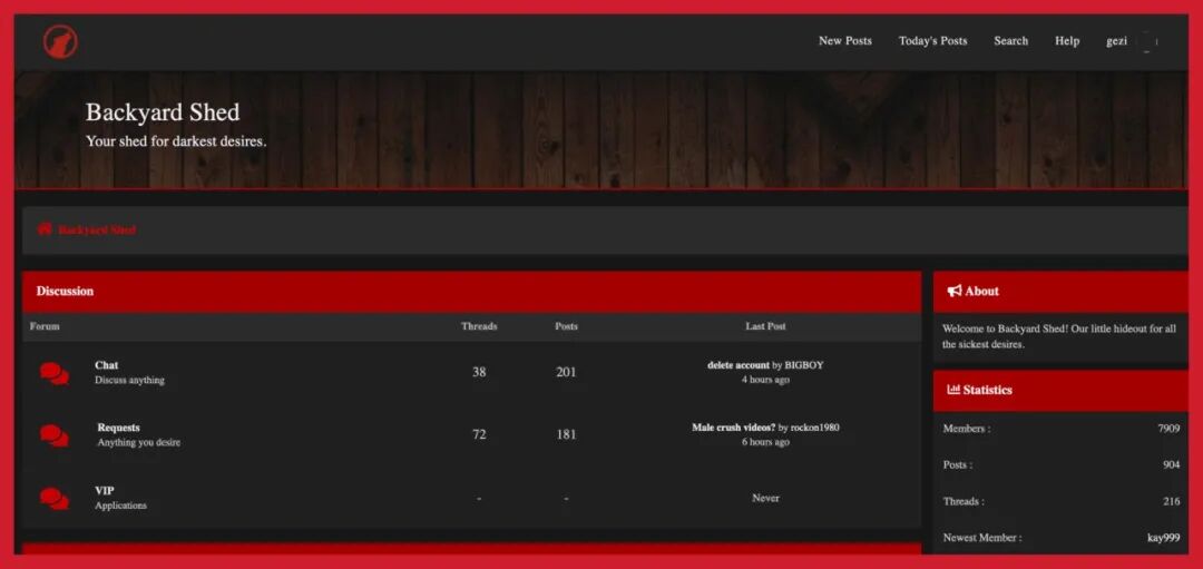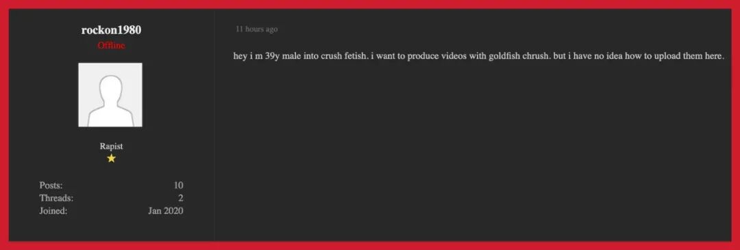 在COVID19疫情期间, 所有人都居家隔离的时期,浏览短视频成为了日常生活之一,消磨时间。在明网,短视频软件和各类聊天软件的使用量,井喷般爆发。伴随而来的是,在暗网,虐童视频的消费者,也开始迅速增加。踩到暗网视频红利的,是一家叫做DarkScandals的网站,大约在2012年开始运营,发布了2000多个视频和图像,并做广告称“提供了全世界女孩的真实勒索、强奸和暴力视频”。随着近期的用户剧增,今年3月9日,忍无可忍的荷兰警方选择与欧洲刑警组织合作,最终缉拿逮捕了该网站的管理员,关停了这个网站。然而暗网中并没有底线,如今还是有平台在运营这类色情虐杀内容。疫情期间,一个仿照“红房间”的Backyard Shed(后院小屋)浮出了水面。可以看出,讨论组分为三个,为“普通讨论群组”、“需求问答组”、“VIP组”。而板块也各有不同,主要以残酷虐杀为主,软色情板块反而是该论坛最为冷门的板块。