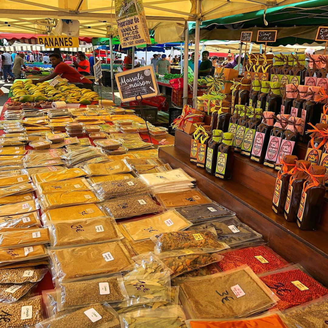 何塞芒果(la mangue José)、灰色果肉的红薯(la patate douce à la chair grise)、zoiso 香蕉(la banane zoiso)、柑橘酸橙(l’agrume combava)......在这个集市中,你可以品尝充分享受到阳光日照的各类热带水果,还有地道印度美食!
