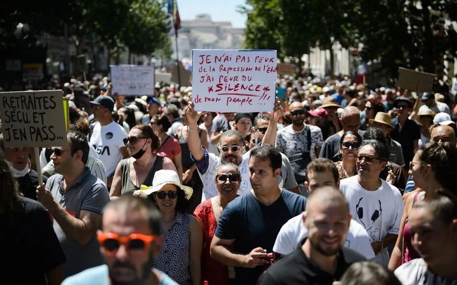 一到周六,法国的各大城市的街道便人头攒动,各种Bus被迫停运。上周六(7月24日)的示威活动则更是空前绝后,全法共计有16万人走上了街头,人人高呼呐喊,以捍卫“自由意志不受健康通行证绑架”。