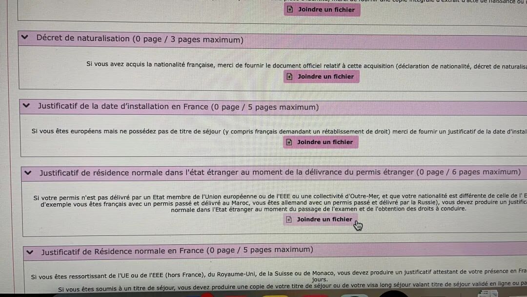看到密密麻麻的提交框,大家也不必“慌张”,图中需要我们上传的材料其实只有“居留卡”、“驾驶证翻译”等前文中提到的文件。