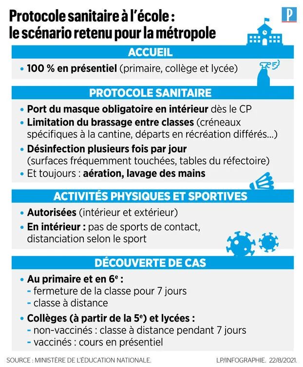 所有学校都将开放并开启面授课程。小学只要出现一名新冠病例,有关班级将关闭七天。初中和高中如果出现新冠病例,未接种疫苗的学生将被视为“病例接触者”,需要居家隔离和远程上课,完成新冠疫苗接种并且检测呈阴性的学生将可以继续现场上课。