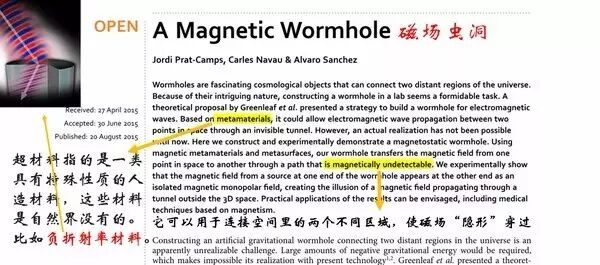 图片来自A Magnetic Wormhole : Scientific Reports 文章发表在现在人人喊打的scientific reports上面,但是人家不管这个。