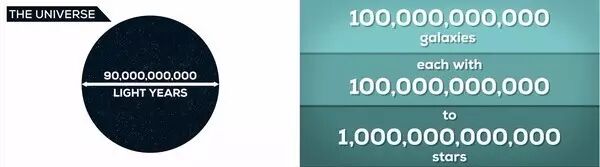 可是,在可观测宇宙中,有成千上万个星系,而其中又有数十亿计的恒星,大部分都有行星环绕,总共约有百万十亿十亿(10^24)颗星体。