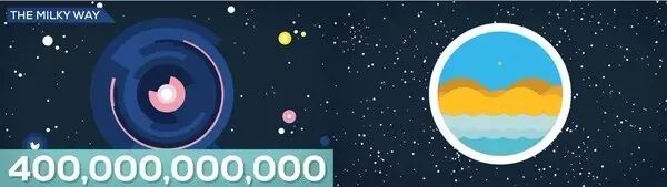 所以,我们把注意力放在银河系上。银河系是我们的家园,它包含了多达4千亿颗恒星。整个可观测宇宙的恒星数量之多,大约是地球上的每一粒沙子可以对应其中的一万颗恒星。
