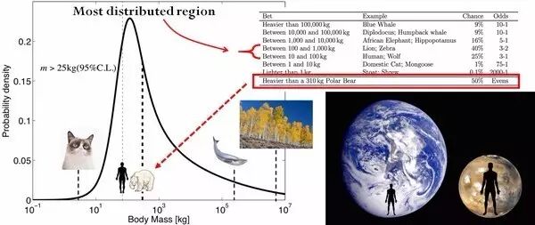 当然,论及到智慧生命,我们人类不知道什么组别是我们所在的。所以统计学告诉我们作为一个个体应该期待自己属于大容量组别,而且我们的种族占相当大部分的人口:
