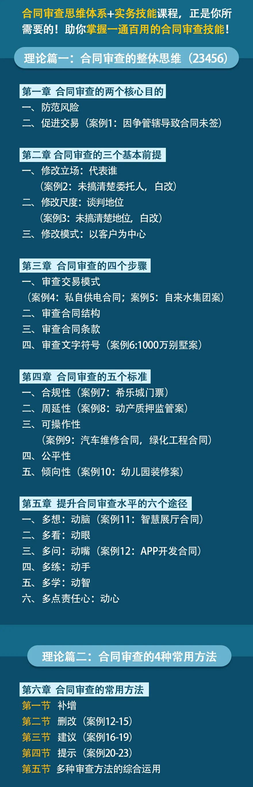 合同事务在律师的非诉事务里,恐怕要占上一半,在企业法务的工作中,更是主要的日常工作。平均约30%的律师认为,自己的合同水平在60分以下。在二三线城市,甚至分别有44%和31%的律师认为自己的合同水平不及格。很多法律人对自己审过的合同,都有一种“不踏实”的感觉。不知道提出的修改意见是否完整、可靠,是否经得起履行。大部分人刚入行,虽然对合同法和司法解释都比较熟悉,但面对老板丢来的合同还是没有什么头绪。想要去请教同事,但没有人会陪着你逐条修改,于是还是要靠自己,最后通过在网上查合同范本、搜审核要点来解决部分问题。合同审查没有现成的指导手册,很多法律人靠的是不完整的经验和碎片化的信息。这就导致了遇到不同领域的新合同总会出现新的难题。掌握合同审查的理论基础、思维方式和实务体系,而不仅仅依靠一些零散的知识点,是成为一名专家的必经之路!张海燕主任将合同审查的整体思维方式与具体的实务技能,整理录制成体系视频课——《合同审查—思维体系与实务技能》21+小时的全面讲解,36个常用条款及合同深度解析,54个代表案例精解,10+年理论,实务经验分享,易学易懂,一次学习就能受用终身。1. 你将学到十几年合同审查领域的实务专家总结的理论思维体系,应对各种合同都能胸有成竹。2. 常用合同审查方法大汇总,这门课里有解决绝大部分问题的方法整理。3. 14种合同条款审查要点、10类合同的审查要点实战指导,全面具体,即学即用。![]()
