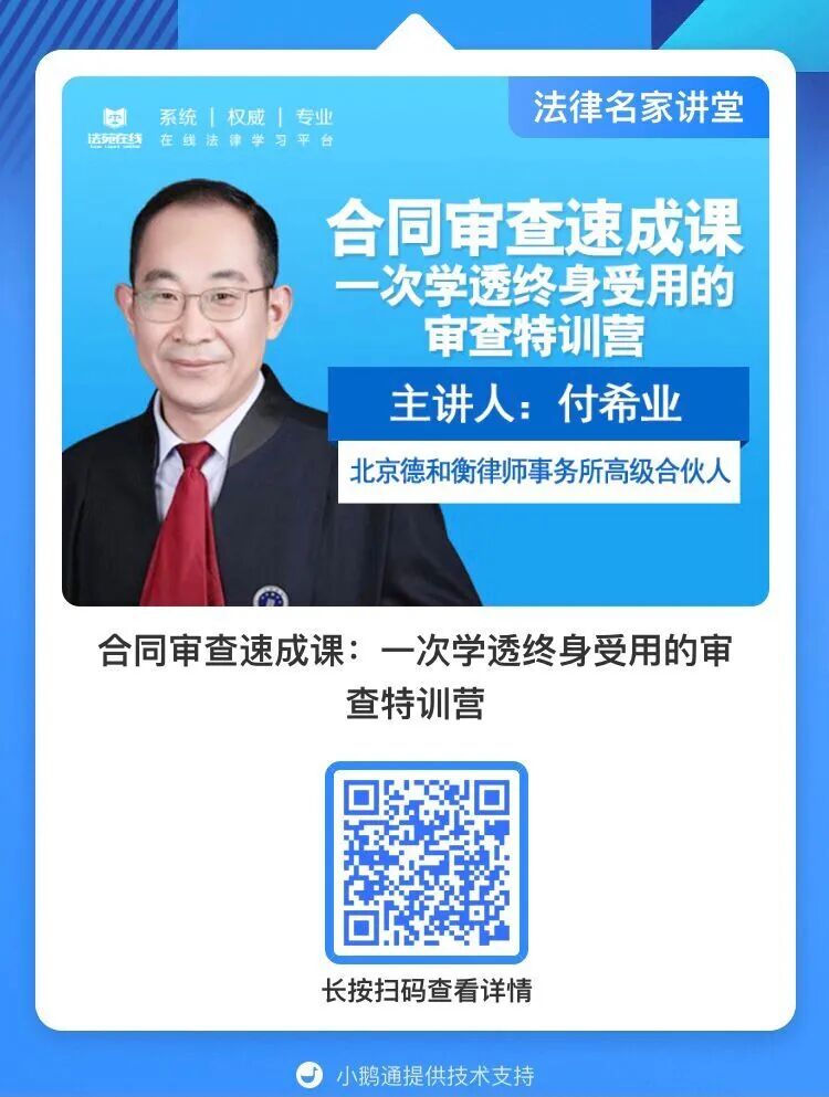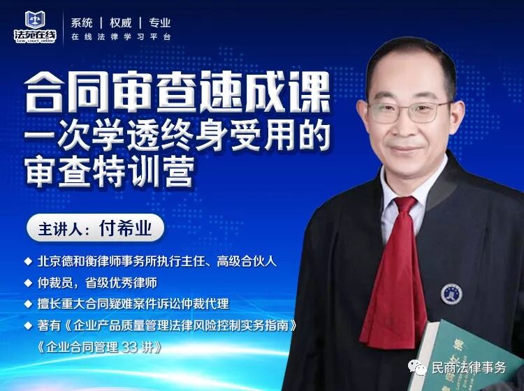 大家好,我是北京德衡律师事务所的高级合伙人,付希业,也是各位的老朋友了。本期课程主要是关于合同审查的实务课。
