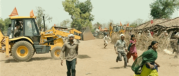 《无法避免的战争》揭示了一个简单的事实:超国家的跨国资本才是这个世界真正的王者,曼汉塔集团在印度君临天下,颐指气使,印度的民选政府也好,像安迪这样的警界精英也好,都不过是为他们清场的打手而已,至于南迪格的贫苦农民,更是被他视如草芥,唯有毛派武装才是他们的心腹大患。影片中,曼汉塔集团拆迁的场面令人触目惊心:巨大的铲车闯入村庄,将农民的草屋像积木一样轻松摧毁,来不及搬走的农民四处逃散,完全是一副世界末日的景象,民主社会吹嘘的“物权”呢?连影子也看不见。![]()