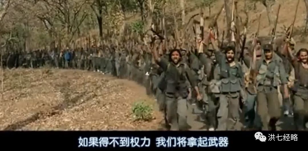 前《人民日报》驻印度首席记者任彦曾经披露说,约有2亿印度人生活在该党控制、影响的范围内。2005年,中国驻印度大使孙玉玺曾公开表示:“我们不清楚这些武装组织为何盗用中国领袖毛泽东的名字;而且我们也不喜欢这样。他们要这样称呼自己,我们也没有办法;但中国与他们从来没有任何关系,中国境内也没有任何组织或团体与他们有任何联系。”在电影《无法避免的战争》中,安迪和卡比尔是一对大学同学,也是挚友,安迪毕业后仕途顺利,升到了警司。而卡比尔有正义感且桀骜不驯,被警官学校开除,在生意场上也屡屡失意。小编推荐大家微信搜索关注公众号 洪七经略 可阅读更多原创精品。这对挚友在印度革命中,由亲密战友走向了分道扬飚,成为对立的敌人,友谊和政治,反叛和忠诚,爱情与牺牲,交织在一起,上演了一出悲剧。电影开始,帝国主义商业巨头曼汉塔集团计划投巨资在南迪格地区开发钢铁项目,条件是要清剿南迪格地区的毛派武装——因为在南迪格地区,就是毛派的根据地。就在不久前,警界精英KK等80多名警察就被毛派武装全歼。在那里,警察能管理的仅仅是警察局,大门白天都要铁门上锁。在当地,人们有事不是找警察,而是找纳萨尔派,找人民法庭。![]()