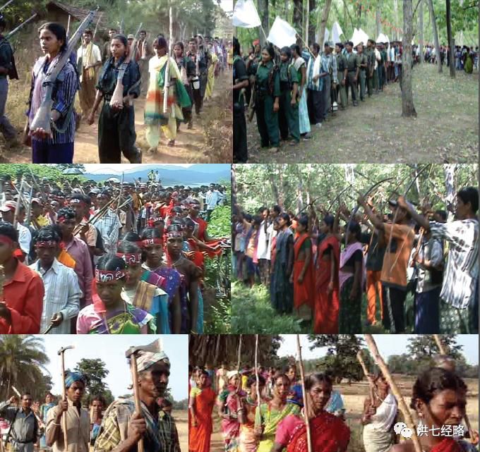 上图可以看出他们都是穷人,大多数还是低种姓。到了二十世纪,这世界上居然还有种姓制国家,不起来反抗那才是见鬼了。人民解放游击军不仅仅再是六十年代末的单纯作战单位,现在他们还是宣传队和生产队,毛主义越学越深入了。今天这支武装已经有了自己的教育,医疗,技术,通信,补给,情报,指导团,警卫团等系统。整个组织运作学中国工农红军,兵源从民兵中选拔。妇女也是这支军队的重要成员,在印度,妇女是受压迫最深的群体,只要被唤醒,脱离宗教思维,她们就是合格的革命战士,找回了尊严和自信。到2010年12月2日,人民解放游击军已经完成了其十年的形成期。在这十年里,人民解放游击军的成立已经被证明是一个历史性的事件。印度历史上从未建立过这样的人民军队。在这十年中人民解放游击军取得了许多胜利,也逐渐发展着为了完成其历史使命所需要的能力。人民解放游击军所取得的成就如下:●成立了中央,邦/特别地区/特别区 军事委员会,分区/师/区,地区级指挥部;潘查雅特(印度独特的乡村基层自治制度,相当于村一级)和地区级的人民民兵指挥部●人民解放游击军形成了三级结构,由主力部队、辅助部队和基层部队三支以相互依赖的方式运作的部队构成。●协调人民战争与群众斗争的关系。人民解放游击军支持群众斗争和群众运动。●人民解放游击军在1992年12月2日成立的时候还处于萌芽状态,慢慢地扩张发展到了连和营级。教育、医疗、技术、通信、补给、情报、指导团队和警卫单位也随着人民解放游击军一起扩大。人民解放游击军正在向着人民解放军(正规军队)发展。●进行了数十次战役,并且消灭了2000士兵,俘获2500件武器以及超过十万套弹药。数以百计的地主、民贼、反动分子、敌特、告密者和各种私人军队都被消灭了。●在敌人的政治权力已经被摧毁的战略地区,人民解放游击军是建设潘查雅特级、地区级和区级革命人民委员会的法宝。●人民解放游击军是完成政治、组织、宣传、防御和生产任务的首要机构。●印度的红军支队——人民解放游击军是我国和全世界被压迫镇压群众和民族的一线希望。●唤醒了妇女。妇女能顶半边天。在政治、组织、军事、文化和其他领域发展她们,使她们能够在斗争中能够贡献自己的一份力量。帮助劳动阶级妇女取得自立。![]()