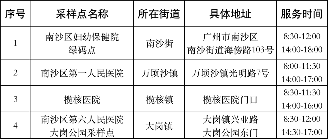 广州每日核酸检测点最新消息等