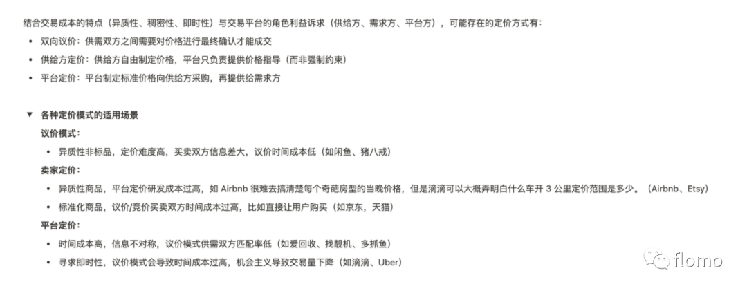 在定期翻阅 flomo 内容的过程中,发现许多记录的知识点和自己日常的工作中都在探讨「交易平台谁来定价」,一个属于自己的框架就慢慢在脑子里浮现出来。