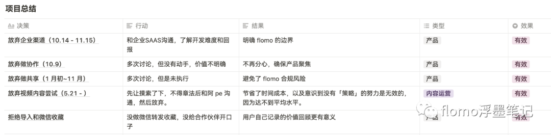除此之外其实还有许多最终放弃的例子,看似他们最终没有产出,但正是这些没有做的事情,定义了 flomo 的边界,也拯救了我们的注意力,确保没有失焦。