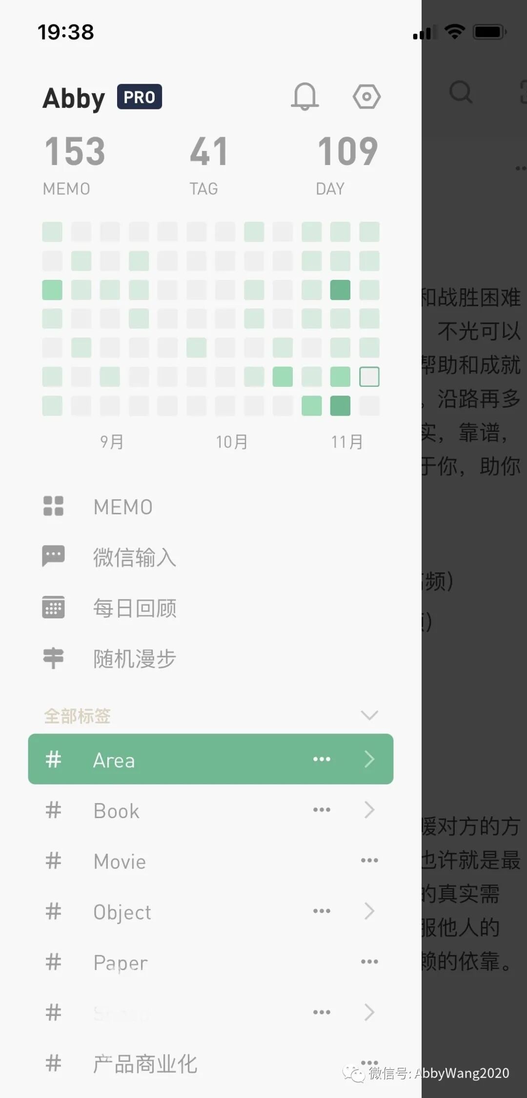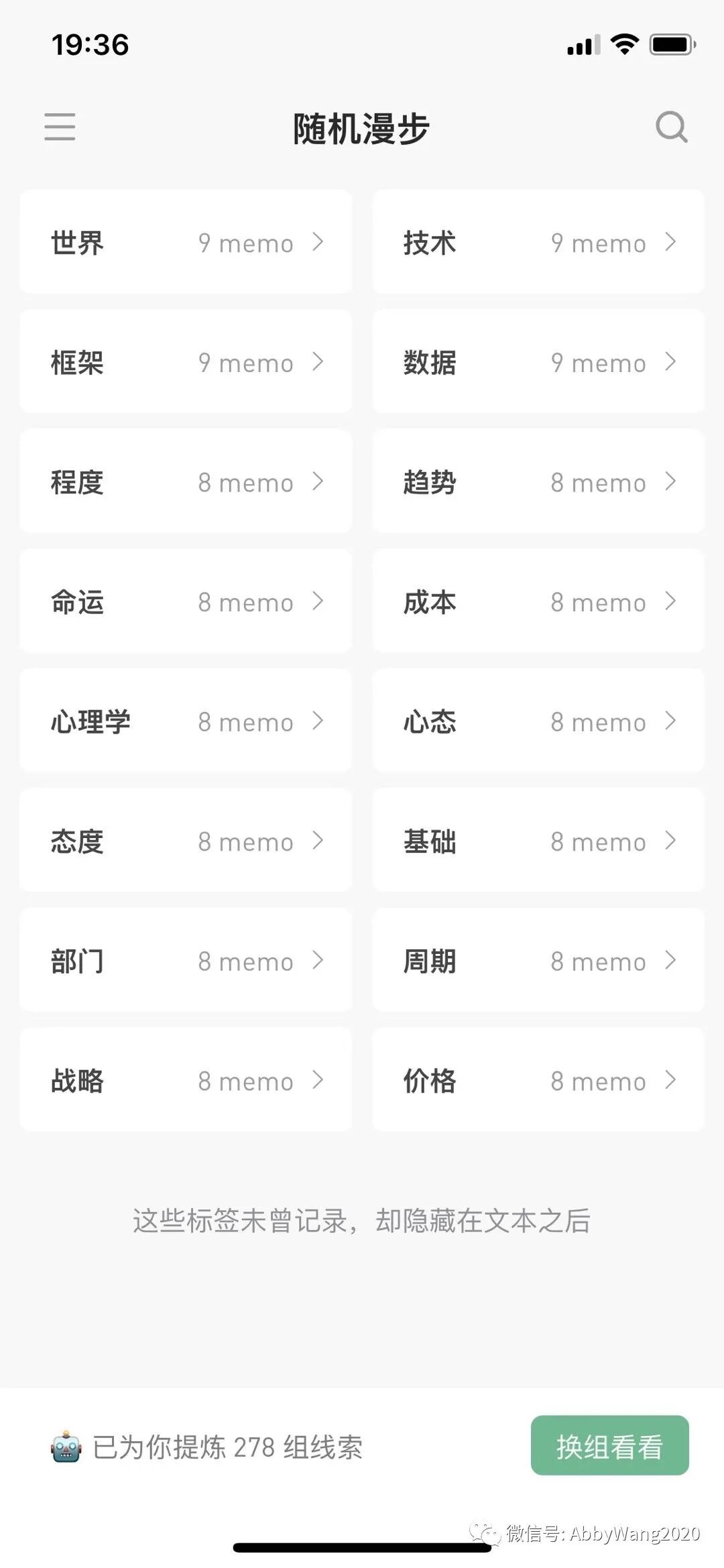 另外 Pro 会员有随机漫步的功能,文字积累到一定程度,也会呈现不同视角,是另一种标签。目前已使用三个多月,大概记录了小五万字。