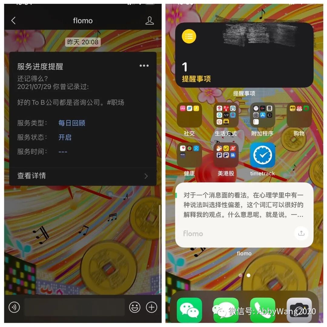 在 Flomo 上有个功能是每日回顾,可通过微信和小组件来实现。不断回顾自己的思考片段、决策片段、知识点,过程中可增加新的思考或者与旧有知识建立联系。让这些知识真正属于自己。