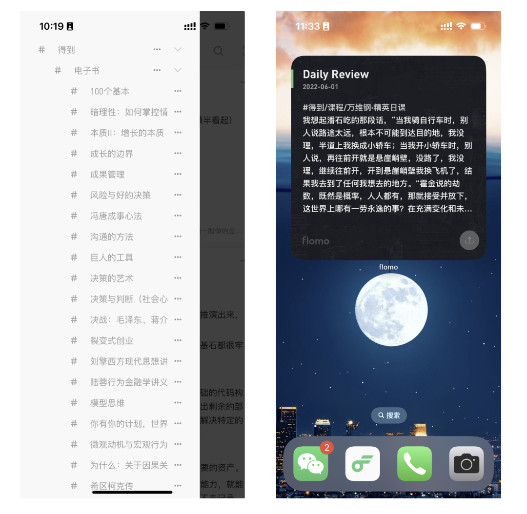 这样读书的时候就可以专心阅读和标记,然后利用 flomo 的每日回顾让过往的记录再次发挥价值,同时可以在空余时间,在 flomo 中进一步回顾和整理笔记,和已有知识体系进行关联。