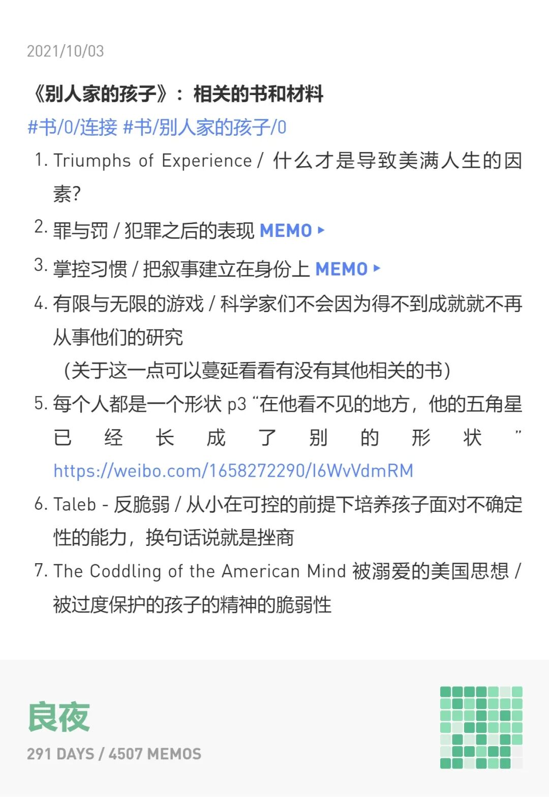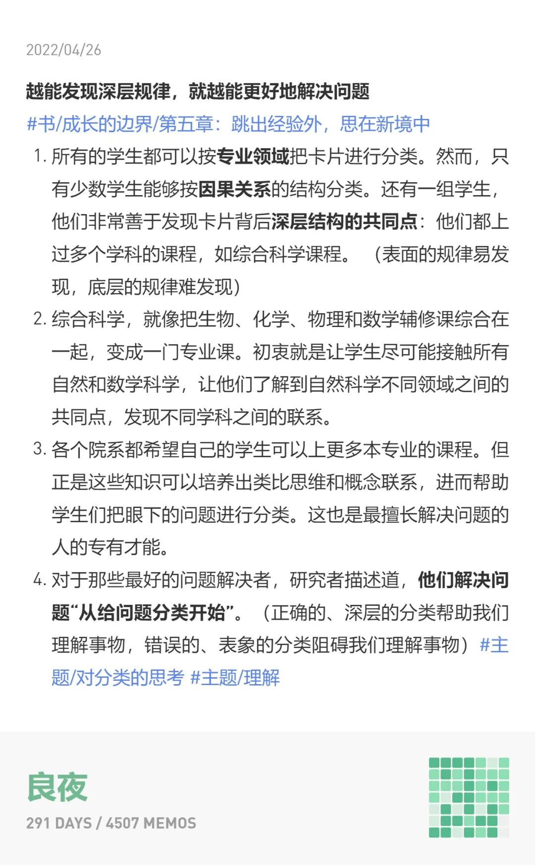 1、有时候是记笔记的时候就已经有了主题或领域的想法,那就在记的时候就打上标签。如果只是写了书名,说明是未分类的,后面会再安排回顾。