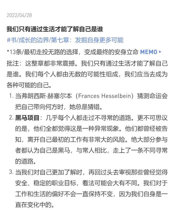 3、笔记可以作为后续思考和写作的材料,可以说是创作者的素材库了,很多灵感和想法能从这个庞大的笔记群中涌现出来。