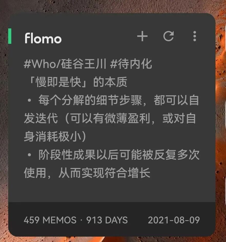 某条 memo,我还需多多琢磨,就打上这个标签;当我已经完全内化,就可移除此标签,或干脆删掉这条 memo。