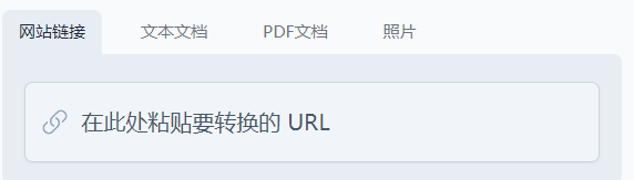 网站支持网站链接、文本文档、PDF文档、照片几种方式转换。