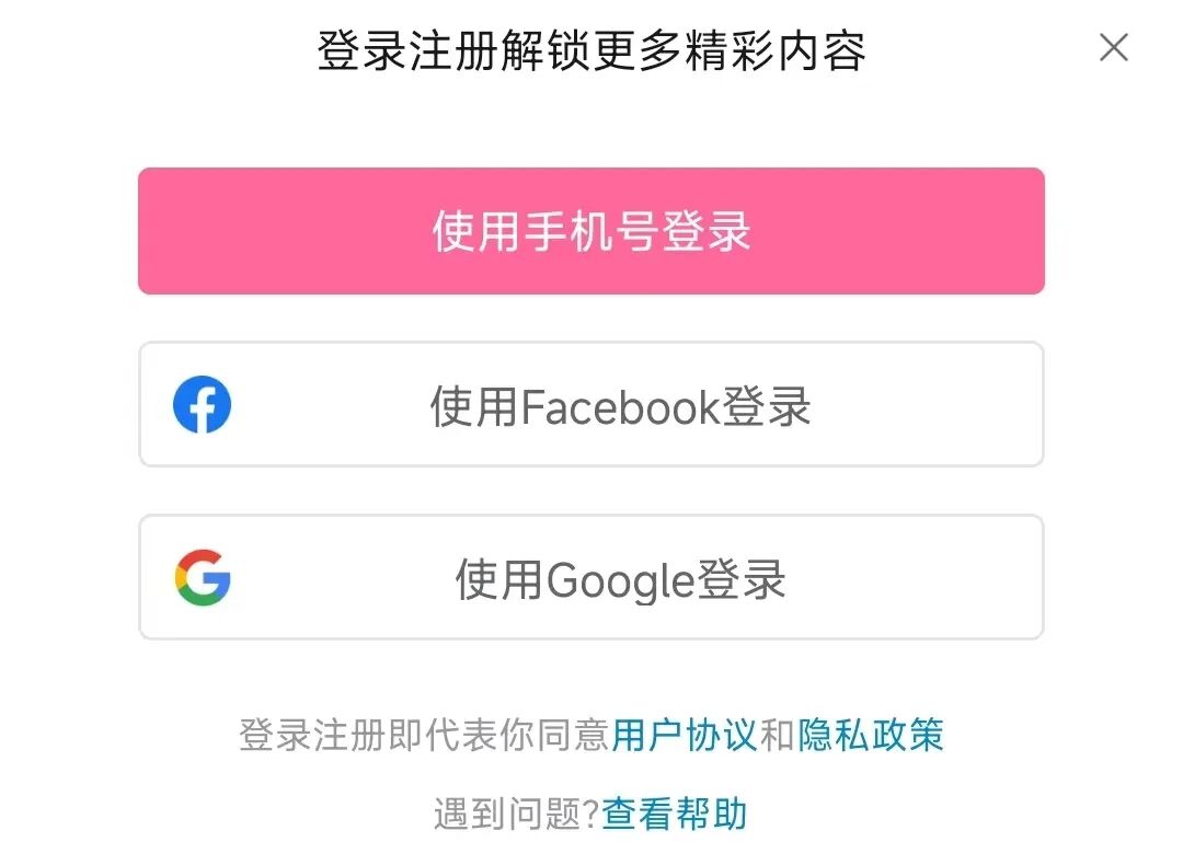 因为是国际版,所以登录方式可以使用手机号码登录、也可以用Facebook/Google登录。