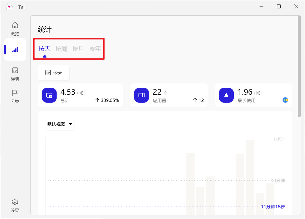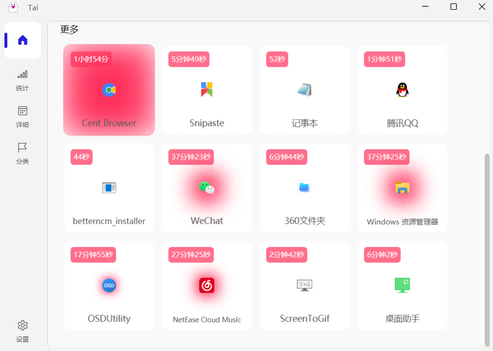 电脑软件使用时长统计软件 Tai