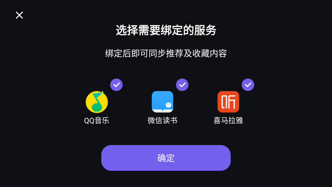 安装后第一次打开软件,需要登录,登录后就要求你绑定三大平台。有这三大平台会员的小伙伴,绑定后就可以听V1P的资源。