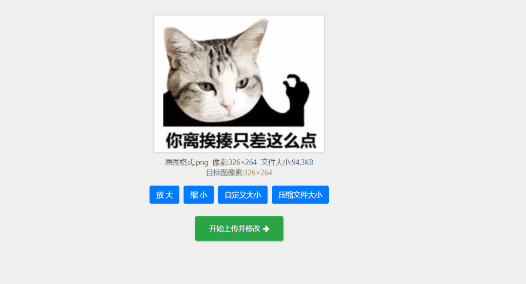 操作方法很简单,上传需要修改的图片,然后点放大和和缩小,或者自定义大小,调整到自己需要的尺寸后点开始上传并修改即可。