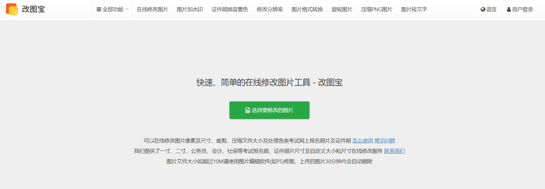 除了修改图片尺寸外,网站还可以加水平,证件换背景,修改图片分辨率、图片格式转换、图片压缩等等非常多的功能。