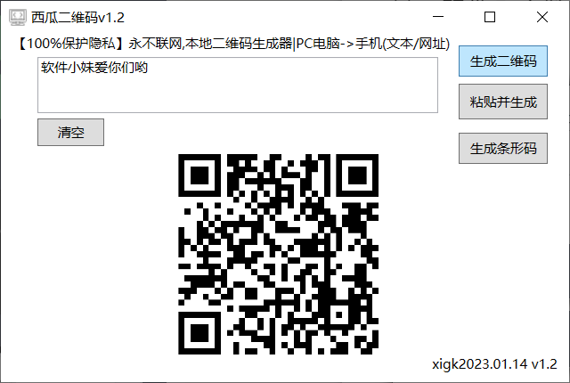这款软件是一款离线的生成二维码的工具,软件永不联网,甚至连检测更新它都没有!