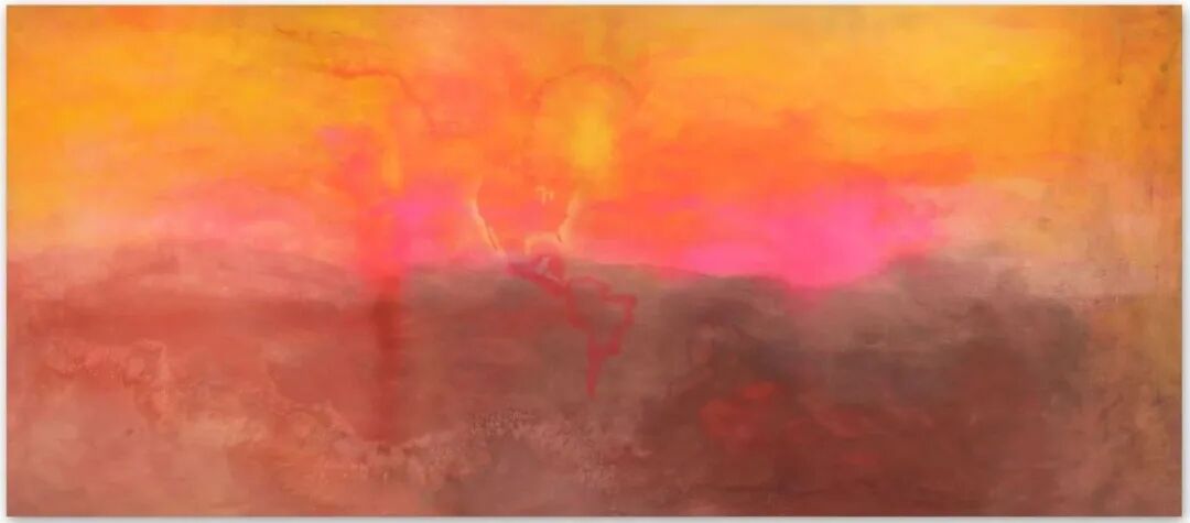 ▲ 弗兰克·鲍林(Frank Bowling),《冲积层》(Alluviumwold),1985,丙烯酸 画布,178.8 × 333 厘米,70 3/8 × 131 1/8 英寸,© 弗兰克·鲍林,DACS 2020 版权所有,图片:艺术家、豪瑟沃斯