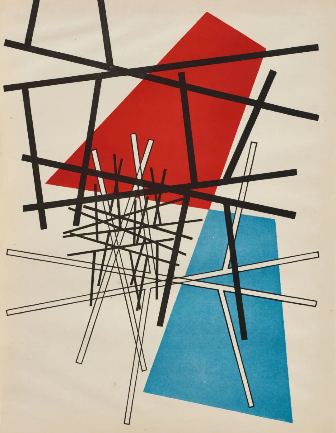 ▲ 《十件原作》(10 Origin)中苏菲·陶柏-阿尔普的作品,苏黎世,Allianz-Verlag,1942(印刷),十幅版画作品集 © 阿尔普基金会,柏林/罗兰德沃斯/2021,ProLitteris,苏黎世。丹尼尔·塞米勒与露丝·塞勒收藏。摄影:Jon Etter