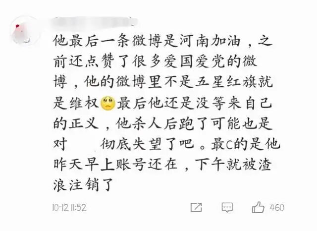 于是传统的欧全中做出决定,以传统的方式,亲手终结近些年积累起来的所有怨气。当他举刀,他不再只是欧全中,更多的身份中,有三十多岁孩子的父亲、八十九岁老母亲的儿子,剩余才是被欺负的身份。同理,欧全中得到公共普遍同情的原因,也是基于他的若干重叠的身份。我一位寡言少语的朋友突然为此评论:换作是我,很可能忍不了五年时间。我敬他是条汉子。这种评价我是不大认同的。我同情过张口口夏口口等人,对欧全中我的心绪却是复杂的,同情不起来,或者说,光是同情是触不到案件折射的启示。我先是这么认为,冤债有主,举刀向孩童,绝非真汉子所为,哪怕是他精神失控的瞬间无法自控。因此,若要对欧全中案件的审判有所寄期的话,我更愿意跳出嫌犯是否死刑的范畴,把目光放置在当初受理欧全中旧房新建事件的各个部门。它们,才是关键因素,必须遭受相应的惩罚,秋天来了,这些蚂蚱蹦不了几天才是最应该给公众的交待。欧全中仍在逃亡,当地悬赏五万元通告缉拿。说实话,这金额对于造成“两死三伤”的嫌犯显得太少。但细想又觉得定价合乎情理: