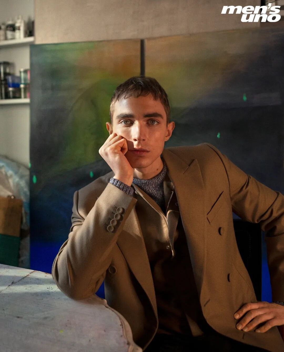 棕色西装、蓝色圆领毛衣、棕色马甲/Dior