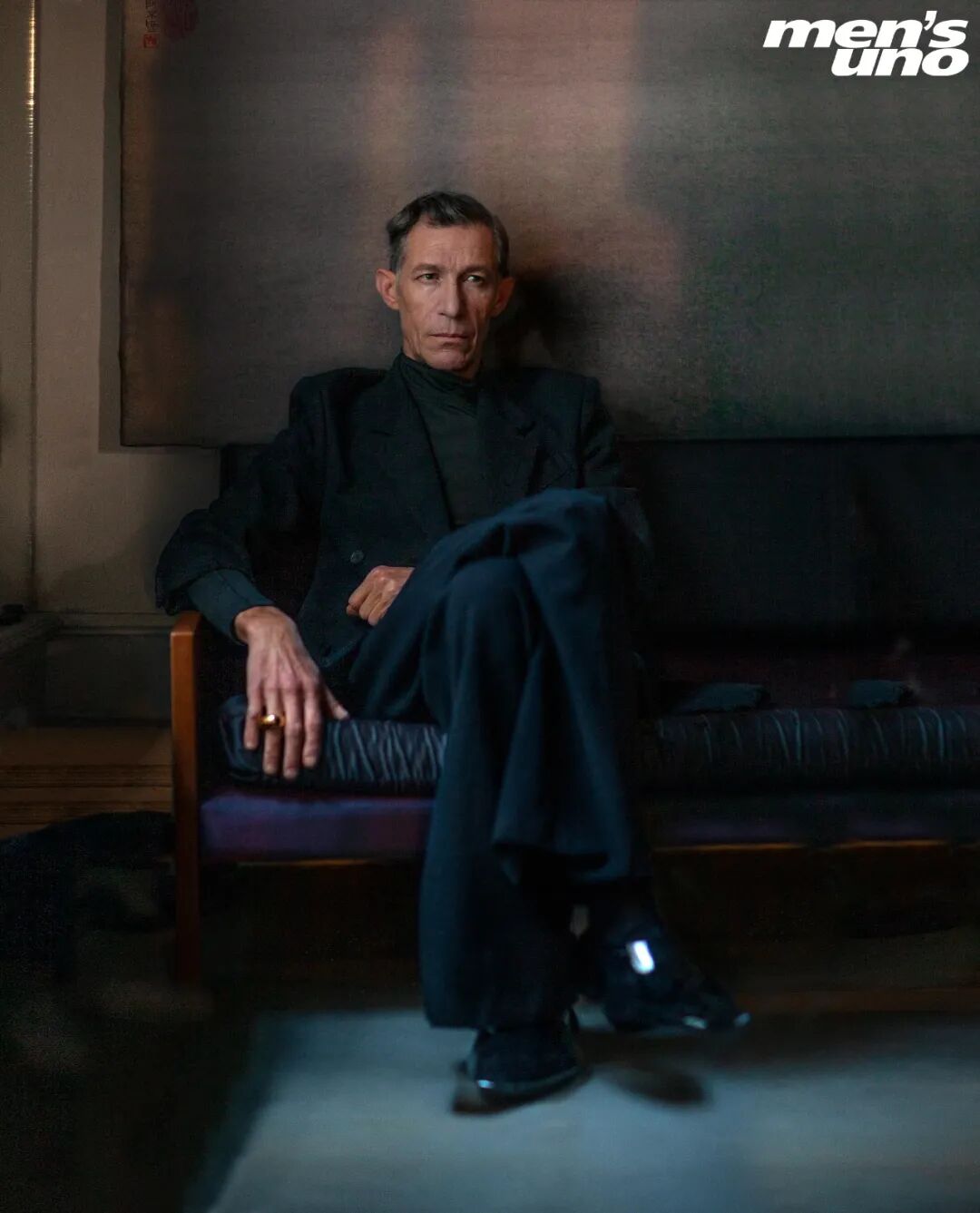 蓝色皮质大衣、蓝色长裤/Louis Vuitton