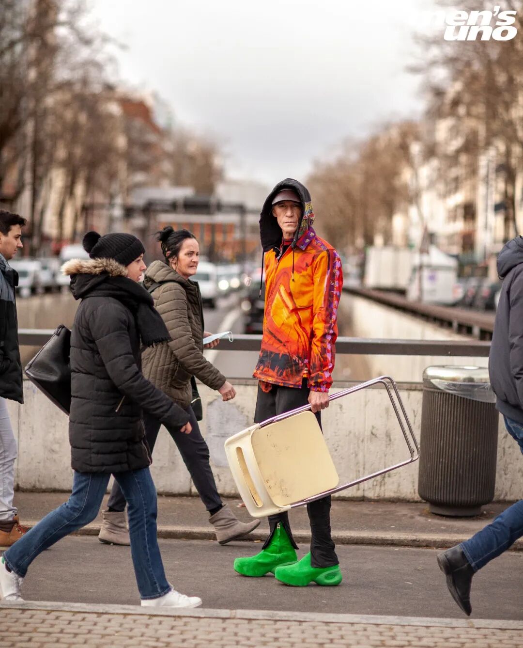 荧光绿色大衣、荧光绿色背心、荧光绿色长裤/Louis Vuitton