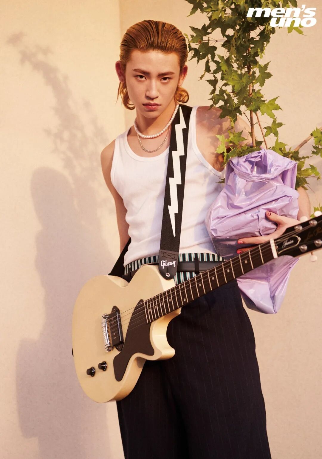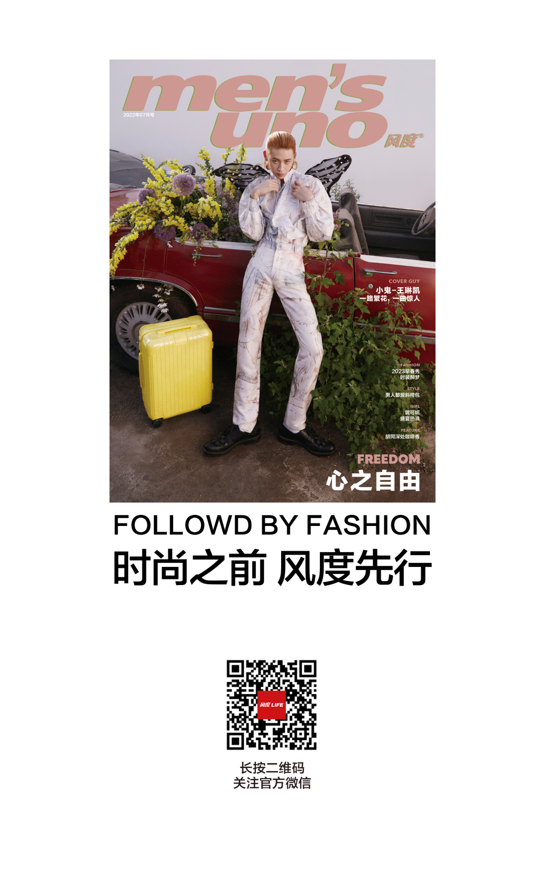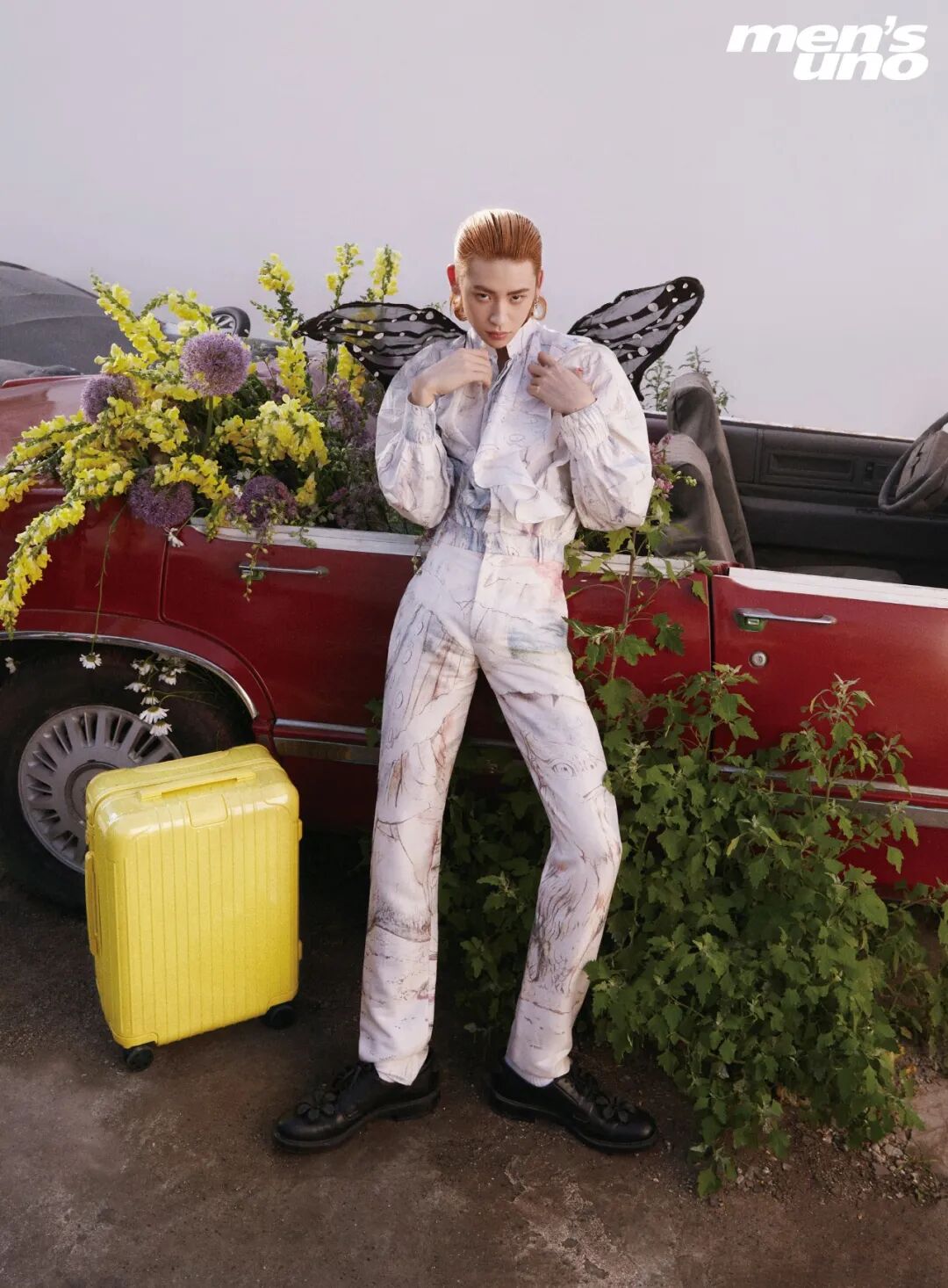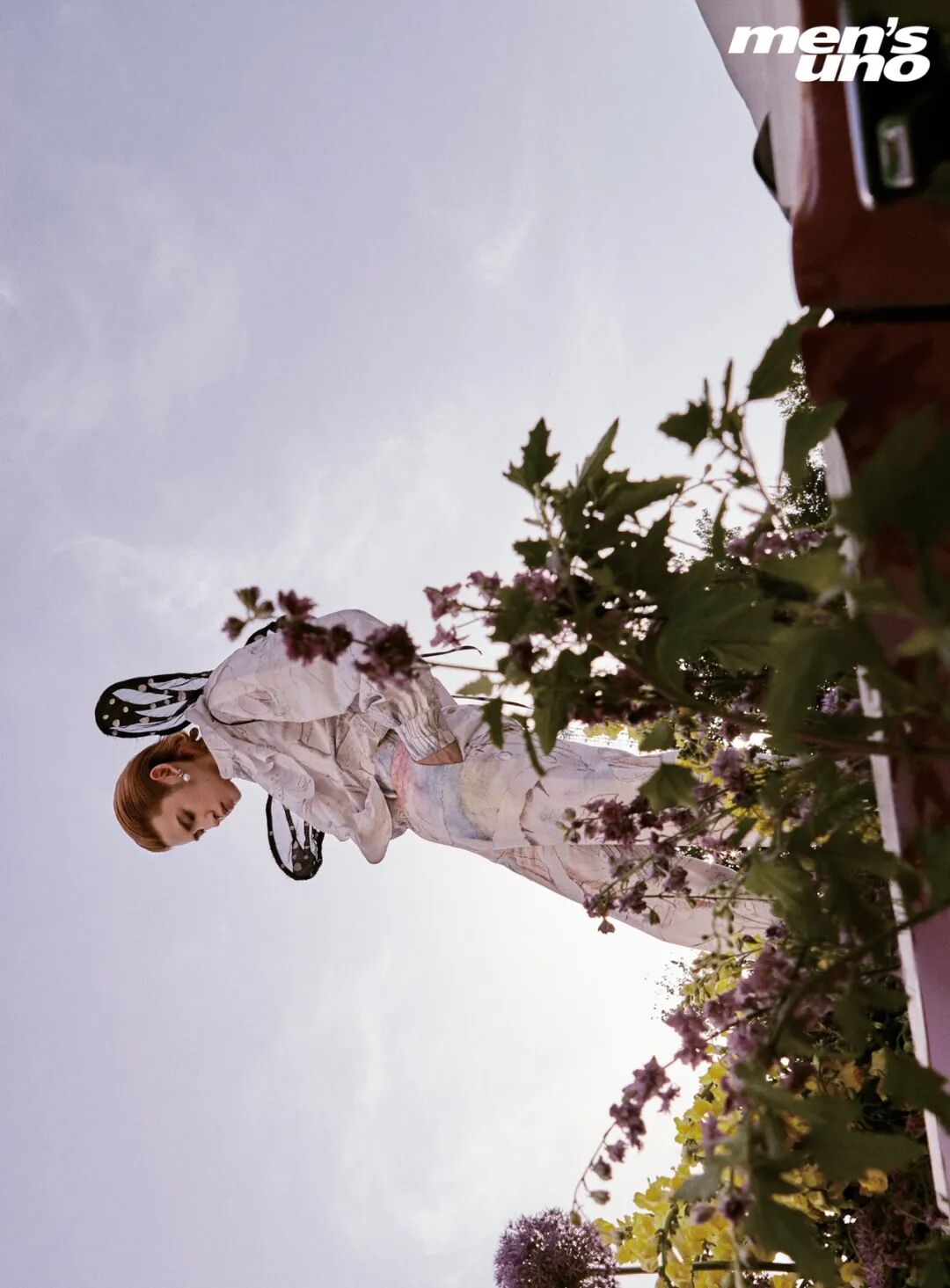 封面拍摄的这天,天气晴透,阳光明媚,气温飙到三十几度。小鬼走在外景拍摄区,置身花丛后的台阶上,用肩扛起了两束朝鲜蓟,做沉思状。这时他的头发光滑地梳向脑后,一身干净的黑斗篷,看上去像个侠士或修士。随后他不时随着现场音乐鼓点晃动身体,显得生动、快乐,全然不像身处炙热的高温中。他已经学会了享受其中。