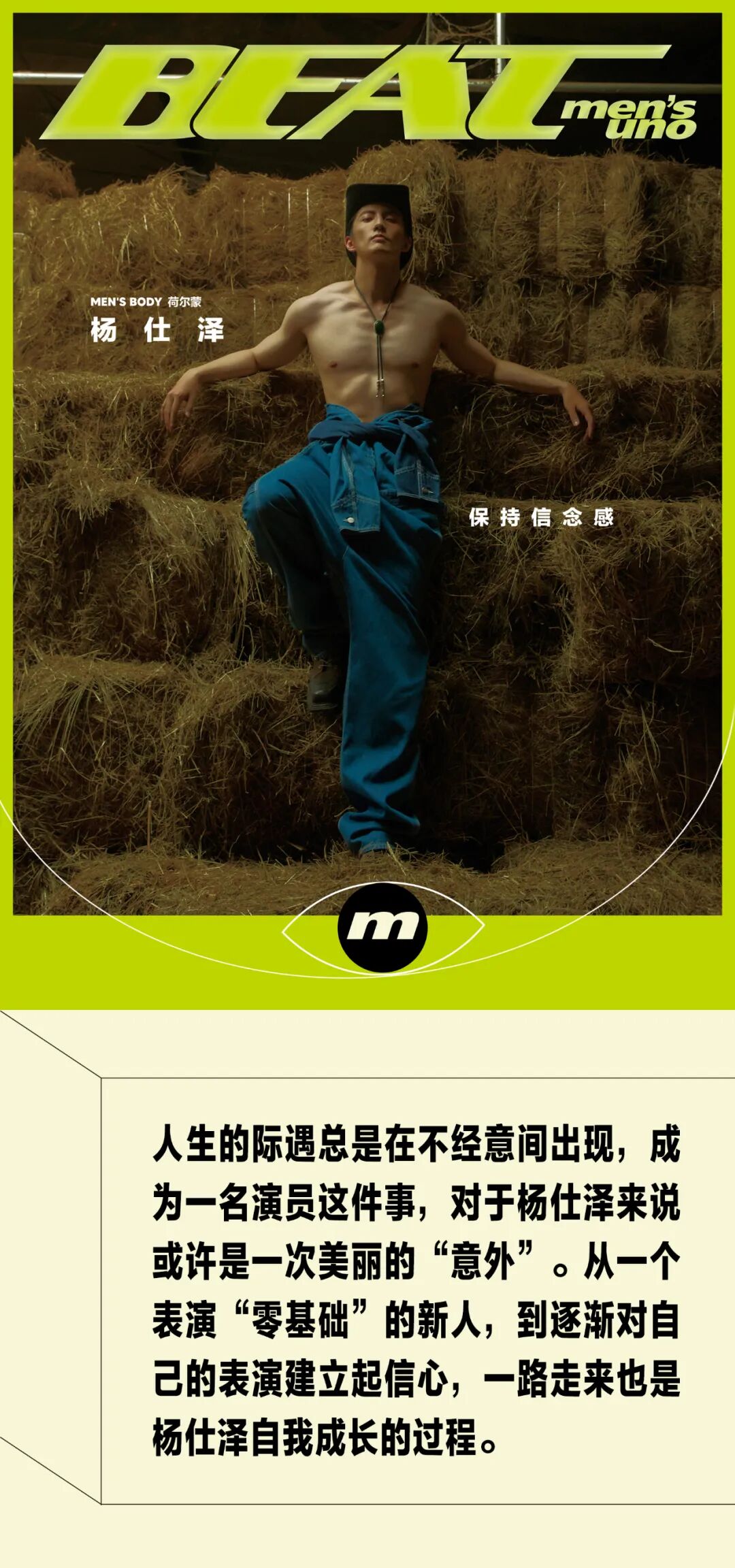 如果没有在25岁那一年与同住一个大院的表演老师李梅偶然相遇,如今的杨仕泽或许正如千千万万普通的大学毕业生一般,过着朝九晚五的职场生活,那一次的巧遇,改变了他的人生轨迹。2017年,他被李梅老师推荐来到刘天池表演工坊开始学习表演,随后入选新人演员培养项目“天鹅计划”。《晨阳》《飞行少年》《恋恋江湖》《月光变奏曲》,短短几年间,杨仕泽在不同的影视作品中,以一个表演新鲜人的角度,体会着演员这个身份带给他的潜移默化的改变。