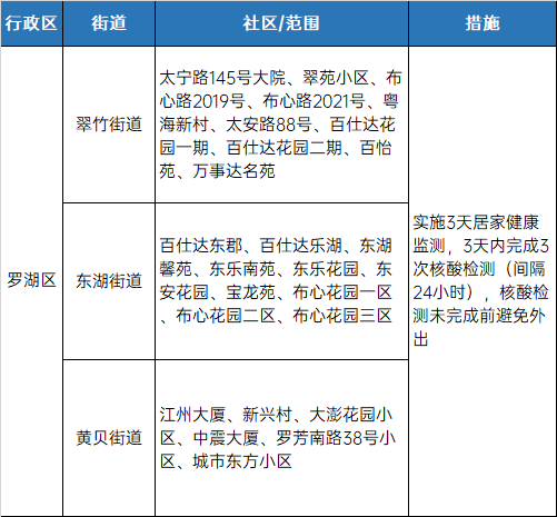 有深圳旅居史的来(返)莞人员(除上述区域外),查验48小时核酸阴性证明,3天内完成2次核酸检测(间隔24小时),并做好自我健康监测。7天内不聚集,不串门,不去人员密集的场所,外出时严格做好个人防护。