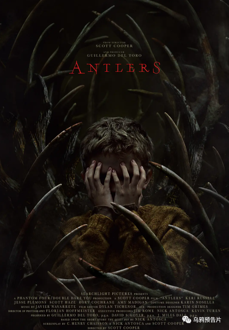 改编自印第安食人魔温迪戈传说!R级怪兽恐怖片《鹿角》发布最新中字预告,将于10月29日北美上映!《水形物语》《环太平洋》吉尔莫·德尔·托罗监制, 讲述俄勒冈州一个小镇的老师和他的哥哥——当地警官,对一个神秘内向的学生产生了兴趣,当她意识到这个男孩藏有一个致命秘密、将是他们小镇存活的关键的时候,一切为时已晚。《逃出熔炉》斯科特·库珀执导,凯莉·拉塞尔、杰西·普莱蒙、杰瑞米·T·托马斯主演。