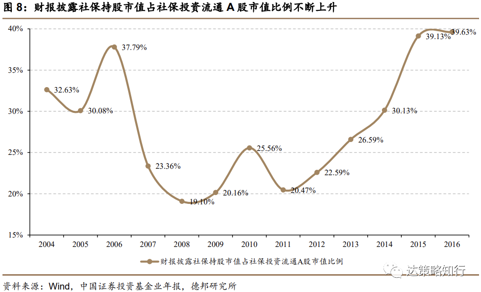 3. 社保基金投资A股仓位约在15%水平,近年来参与A股程度不断下行