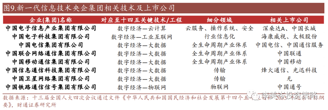 在第一步战略新兴产业分类的基础上,我们进一步拆解制造业核心竞争力提升、数字经济重点产业相关央企的主要相关技术、工程如下。大方向上可以分为制造业为代表的“硬件”和数字经济为代表的“软件”。