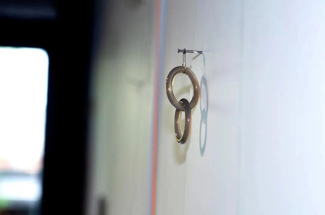 姚:好像一些雕塑也是利用这种错觉,用很重的材质去呈现很轻的视觉表象,比如说,姜杰老师是不是用大理石做了一个泡沫饭盒? 张:可能不是姜杰老师。但是我确实知道有这么一个大理石的系列,或者Jeff Koons那样的。 梁:去年艺廊年末展——点石成金,李维伊的作品Zara2021,对现成耳饰的再设计,也是看起来重,其实很轻的一件作品。梁:说到李维伊,今天请她来,包括近期也跟她有些频繁的互动,是因为我觉得她是个比较特别的艺术家,虽然不是首饰艺术家,但是她很擅长做一些小体量的作品,其中包括首饰。 还有就是,我们刚开始将这个展览项目定下来的时候,姚斯青作为策展人来过这里一次,她当时问我怎样看君锦近期的作品。当时还没有定下展览的主题是'O' FLOW, 但是作品的主形态——环,圆是清晰的,我就主要谈了这个形态——我记得我当时的回答是,环、圆、或洞,算是首饰的一个本质的东西,每一件首饰,势必要有环、有洞、有孔。比如手镯、项链、戒指是环;胸针要在衣服上穿孔,才能和身体关联。同理,维伊也曾说过,即使是耳针,它本身不是一个环形,但也需要在身体上打个孔洞才能实现功能。所以对于首饰来说,环、圆和洞之类,是必然会出现的“环节”,是一个本质的东西,甚至是一个缓冲,一个链接。 吴:我接着梁晓的话说。为了这个系列,我确实做了挺多的案头工作。实际制作是从19年开始,但这之前,我研究了很多不同的文本。我个人很喜欢非洲人的饰品,比如在他们的很多能量造像(Power Figure / Nkishi)上可见的那种,他们往往在脖子上,手上,叠套很多的环。这在我看来,解释了一个最基本的问题——人的身体是圆形的,或椭圆的。所以,即便是胸针,不管哪位艺术家,选择如何“放肆”地在上面做很多造型,力求多变,但基本的、真正起作用的,穿过圈孔而过的实质从未改变。正因为这样,此次展品中有很多仿造环形传统玉手镯的再创造作品,占据了展览的视觉中心。 我个人认为手镯最有意思的不仅在于那个环,而是由手镯所围合的、圈化的一个可以让手臂自由滑动的内空间,那才是生成运动与自由的关键,它让我感受到显著的空间性。而悖论的是,那个被圈化的环形边界,反而在把玩的过程中,会被人忽略,甚至不以为然。所以,在一个环状物上附加过多的装饰,对我来说,非但不必要,而且多余。 给身体留有余地,把握局限中的空间性,是我一直以来颇为看重的首饰设计的基底。