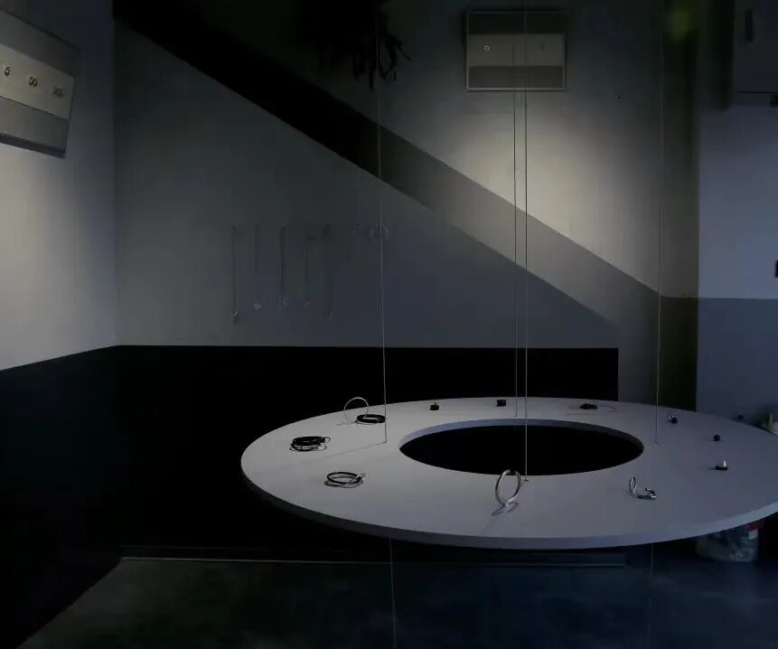 魏:好的。我个人看作品的习惯是先不看作品介绍,从我个人直观的感受出发去体验作品,看作品本身它可能带给我什么,然后再去结合创作者背后的逻辑、思路,做进一步思考。展览开幕前,我在推送看到学姐的这个系列,当时给我的直观感受是,觉得你非常大胆。大胆地将“圆”这种造型符号在同一个系列、同一个展览中不断重复,在几乎没有其他图形介入的情况下直接呈现。我个人觉得,至少在目前,很少有艺术家有这样的胆量,拿这样一个符号,来做这样的一种处理。此外,我之前也读过很多学姐你写的文章,再进一步结合对于你的了解,就觉得你的文章,文如其人;你的作品,人如其作;有一种共通的气质在其中。具体说到“圆”这个形态,我现在非常喜欢这一形态或图形的,不知道这是否和个人经历或审美有关。事实上,我以前可能不是特别喜欢这个图形,我以前更喜欢三角形,现在却越来越喜欢“圆”……魏:(笑)我认为这个图形是包罗万象的,甚至觉得,我可以以个人的方式,从不同的角度对它进行再理解和再诠释。比方说,当生活中找不到一个出口的时候,我就需要一些“圆形”,或“有着圆形出口的洞”,在我心里滋生了类似这样的一种领域、一种空间。当一些解释纳入其中,就会变得非常游刃有余,它给我一个内在充盈的满足感。其实,在我以前的作品里,也尝试使用过这一形态。吴:对,我记得你的一件作品,一件用翡翠和有着相似色泽的透明胶结合而成的一条项链,确实用到了类似的形态。魏:嗯,是的。我刚刚在楼下展场听学姐的导览,你创作的背后,结合了一种东西方不同的角度;而我的角度,可能不从文化背景这一逻辑来阐释,就是想通过这么一个形态,打通一条隧道。无论是中国古代的诗歌里非常意境化的具象的想象,或者说,把它们和西方哲学理论有所衔接;我看到学姐你运用这一图形,就像在书写一篇文章一样。我还没有特别仔细地去读这个展览,也许这一展览,也像一篇文章,有基本,还有它的某些子系列,这些子系列,每一个都可能在诠释不同的东西,所以,读视觉作品,如果像在读一篇文章,这会让人非常感动。李:我肯定没有办法从首饰的角度去谈。顺着几位的话来说,我对刚刚几位提到的“作者性”这一概念还挺感兴趣的。其实,“作者性”是一个很现代的产物,你们都提到了出现作者性之后的一些状况。但我刚刚想象了一下,再看这一系列,反而让我想到作者出现之前的一些东西。有一本书对我影响很深,叫《没有建筑师的建筑》,因为出现“建筑师”这个职业之前,世界上已经有很多在做建筑的人,比如说,很多的原始人类也做出过很棒的事情。为什么我们就没有留意“首饰艺术家”出现之前的那些人?比如我们之前提到的玉璧、玉玦、玉管等,为什么那么早之前就会有这样一个形态?那个时候的人,他们在制造这些形态的时候,并不强调“我是谁“、”我做过什么”,所以,对我而言,其实你把自己的“作者性”擦得很干净,就是你的“作者性”可能刚好体现在你把这个 “作者性” 抹得很干净。吴:好,谢谢维伊。现在轮到我。我先说两句,再请张一谈吧。关于“原型”和“原型设计”,刚刚时翀和学妹已谈了很多,我就不再重复。仅提一点,关于这次展览的主题:'O'FLOW的由来。“O”这一形态,作为此次展览的基础,确实如子欣所说,在两层展示空间被反复提及。而作为图形,它在标题中的出现,则意味着这一标题是由图形和文字共同组合而成的,也就是说,这里提出了一个假设,假想不同语言和文化背景的人,在看见这一图形的时候,都可以觉察标题和展品的关系,一种无差别的图像语言。那么至于“FLOW”的部分,即便使用了英文,没有中译,也不会太影响观众的理解,这是此次展览标题未使用中文的原因之一。第二,老实说,“FLOW”也确实很难找到相对应的、精准的中译。在我个人的理解里,它可能包含了三层意思:一、就是台湾译者所喜欢使用的“动线”说,这一译法,涉及了它的律动性,流动性,但似乎显得生硬,并不准确;二、如果遵从当下流行的译法,所谓“心流”说,似乎也过于强调心理层面而忽略了物质性;三,斯青在前言中提到“进境”,我觉得更为准确,如果真要翻译,我个人也趋向将它译为“进境”或“化境”。但这样一层意思,又可能稍显阳春白雪了;美国嘻哈歌手在演唱rap的时候就很通flow这种感觉,说明这个词也可以很落地。所以,这里最终仅呈现英文。此外,对于“流动”、”进境”之类的诠释,我希望不仅呈现在展品细节把控中,也融入展览的整体空间规划,我一直很注重由观众的游走所引发的流动线索,以及这一流动的线索将会和作品产生怎样的潜在关联,这是我在下一步,即展期中,希望去觉察的。张:因为我刚刚到,还来不及更多、更细地看作品,但我之前已经通过推文和图片有所了解。我一直对首饰这种物质的形态很感兴趣,作为一个雕塑者,像你们刚才所阐释的,它作为一种图示,或者一种独立的符号,可以无限延伸到智识的世界里。但同时,我们作为个体,又是通过切身的摩挲来读到这些信息,这就是一种非常美的人与物的关系,而且又是相当内敛的。特别是在当下的这个世界,物质极度丰富,大体量的东西那么多,建筑、大批量生产的物品……但反过来,似乎一种更为珍贵的,人与物可以耳鬓厮磨的依恋关系,则变得少之又少。所以从雕塑者的角度来说,当我在看