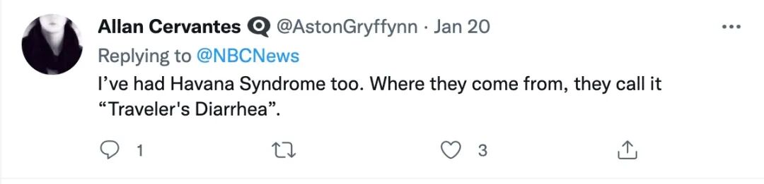 “他们不知道(‘哈瓦那综合征’)是由什么引起的,但他们知道不是谁造成的。呵呵……”
