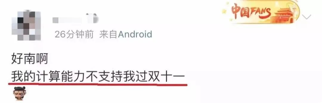 “什么情况”认为,双十一集中购物,看起来省钱,实际上超出了每月固定的消费额度,也就是把自己的现金流用没了,甚至“吞掉的是我们未来的现金流”。未来需要付出更多时间、精力来补这个窟窿。“如果连我们的衣食住行,日常消耗品都要被蚕食未来现金流,那年轻人还有啥未来,生活保障都岌岌可危了。”“什么情况”对壹娱观察(ID:yiyuguancha)补充道,消费主义的临时满足感不会让你一直开心。“不要掉入他们设计好的圈套”,要给自己留足现金流。抖音上有一条视频,鼓励男女朋友在双十一互相清空对方购物车。没想到评论区点赞最多的却是一位老哥的发言,异曲同工。“你不教他俩攒钱净教他俩花钱,你让他俩以后喝风去啊。狗头”。苏宁金融研究院的数据显示,我国居民家庭负债率二十多年增长了近二十倍达到了55%,超过了德国,逼近日本,而居民人均收入却远远低于德日两国。短短二十年,中国人从储蓄为主变为人均负债14万人民币。这其中大头是房贷,消费贷一直处于增长状态。但奇怪的是,社会零售总额却没有明显增长。这说明我们全社会需要消费的货物总量是一定的,家庭负债率升高和消费贷款增长,意味着很多家庭买了很多实际上不需要的东西。网友“萝卜坑里刷文具”此前一直是双十一的拥趸,但最近两三年也不再热衷参加双十一活动了。“双十一对普通人就是为了买同样质量的东西更便宜,如果一些非必需品没有7折及以下的优惠价格,我会选择观望,或者去其他平台、渠道购买。一方面是减少了消费欲望,一方面是不愿花费时间精力去换取一点点优惠。”“萝卜坑里刷文具”表示说,双十一活动复杂浪费时间、华而不实,战队升级抽红包等活动为了赢过对方,还需要发钱拉更多人来给自己助力,本来网购是为了省事省时,现在不但要投入更多时间精力,最后还不一定能得到更多红包抵用券,年复一年,大家也就不再热衷双十一了。虽然不热衷于双十一促销,但这位网友对于消费本身的态度却更为理性。“为什么不消费呢?”过度消费与反消费本质上是两个极端,都不是合理的消费方式。“在一个工业化、信息化时代里,用金钱换取自己所需的东西,也就是消费,是无法摆脱的,而消费这个行为本身并没有好坏,如果消费你需要的东西,金额不会为你带来负担,你购买的东西不会成为累赘,并让你生活得更方便、更舒适。”她认为按需消费是有必要的。她反对的是铺天盖地的广告、软文,随时随地都在告诉人们你要买这个包、用这个护肤品、买这个车、住豪宅、去哪里度假,这样才算人上人,别人才不会看低你,只有这样做你才没有被社会、被时代抛弃。广告心理学里教从业者用明星、恐惧、从众等心理制作广告,为甲方带来流量和购买量,但不去考虑众多消费者是否真的需要广告上的商品。“个人面对广告公司、产品公司是渺小的,现在的算法也不会让你看到整个世界,只会让你看到算法公司想让你看到的世界。我不喜欢这样的美丽新世界。”